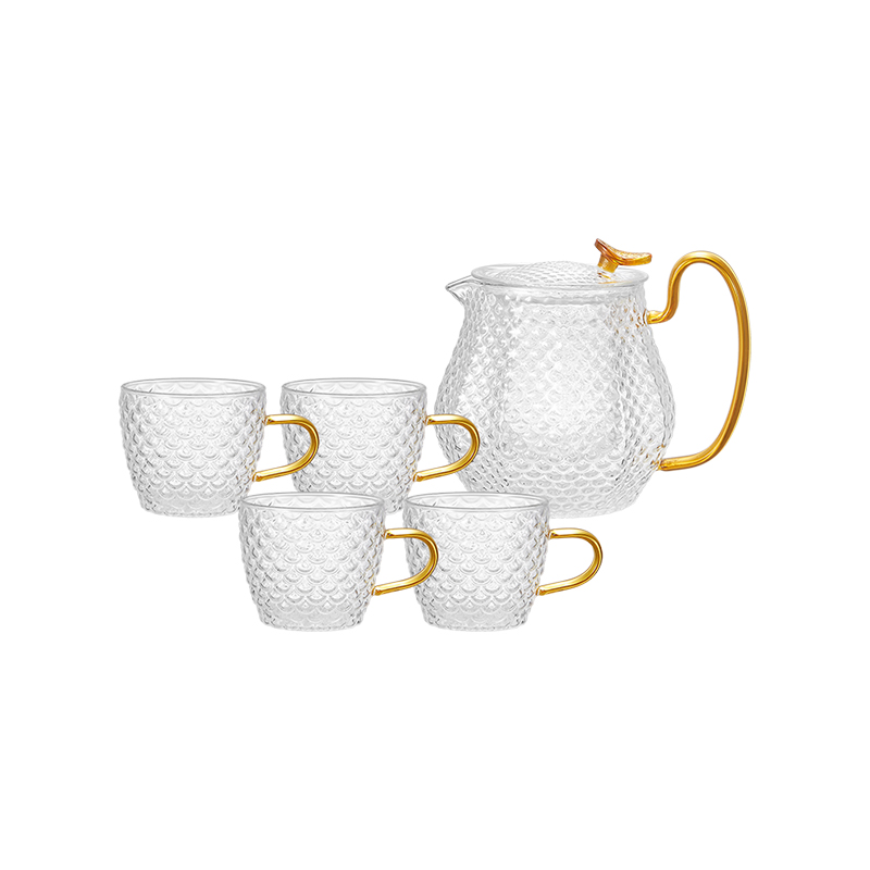 (巨邦佑)BJ+康宁龙鳞茶具套装 茶壶*1+茶杯*4 耐高温玻璃家用