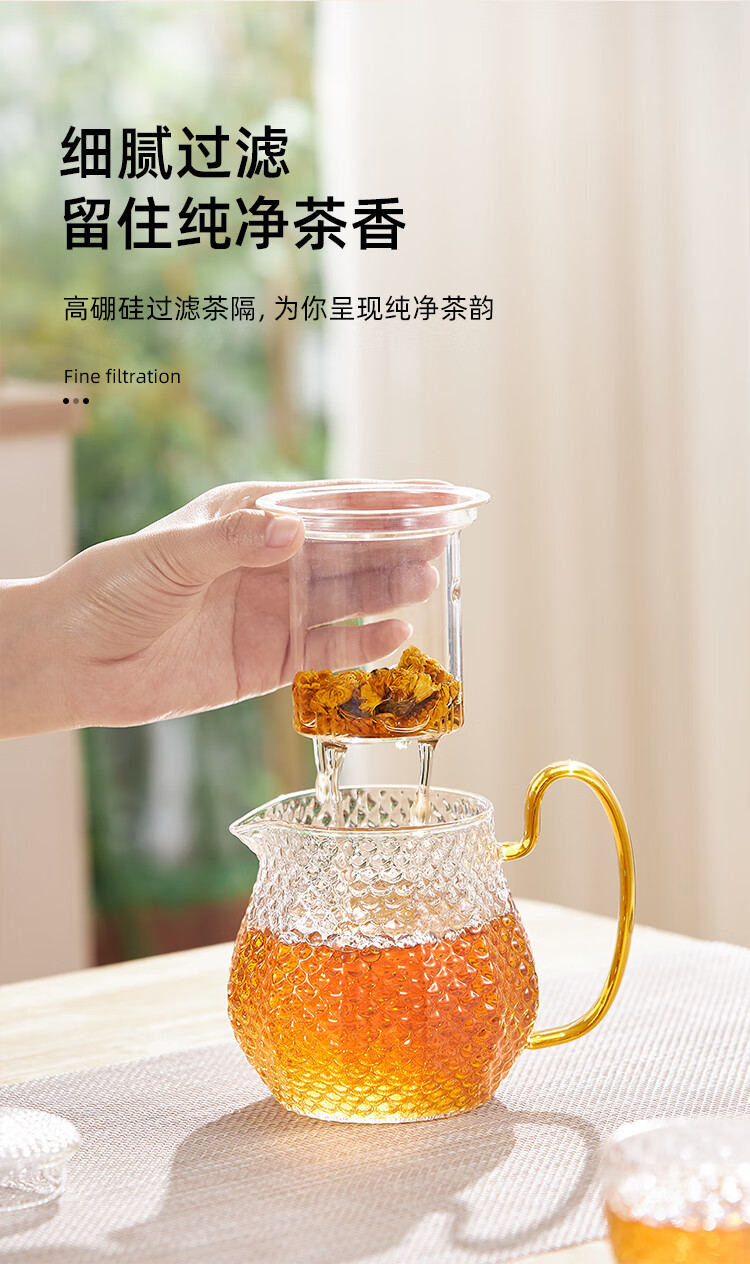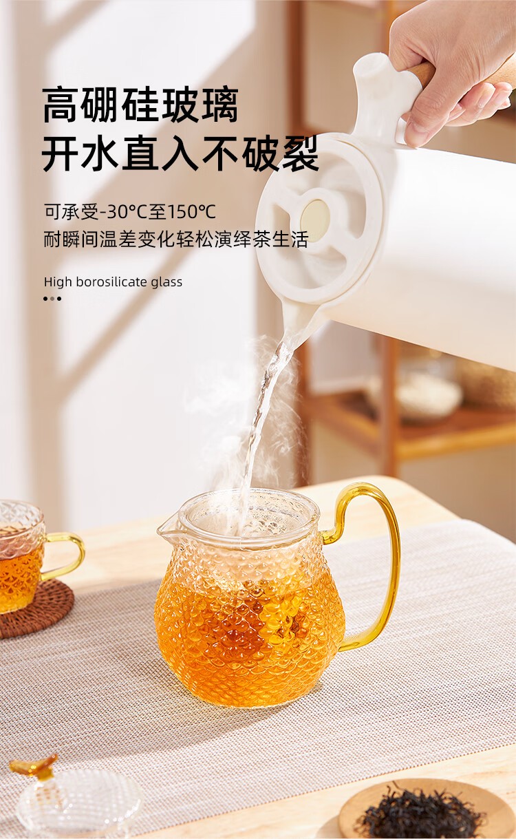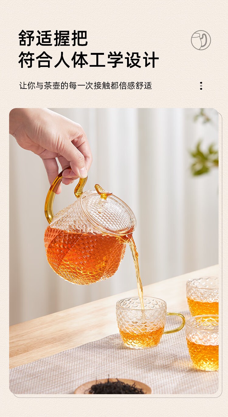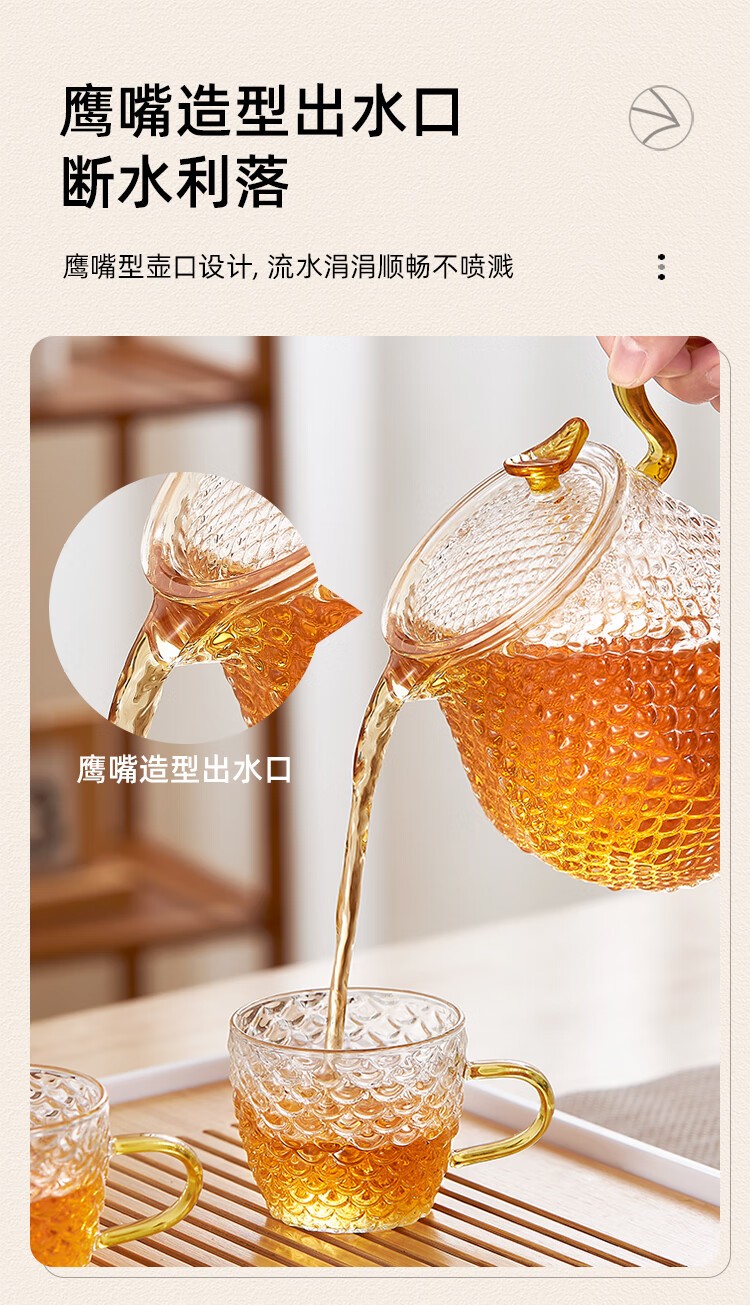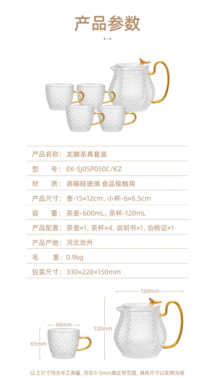 商品名称:(巨邦佑)BJ+康宁龙鳞茶具套装 茶壶*1+茶杯*4 耐高温玻璃家用