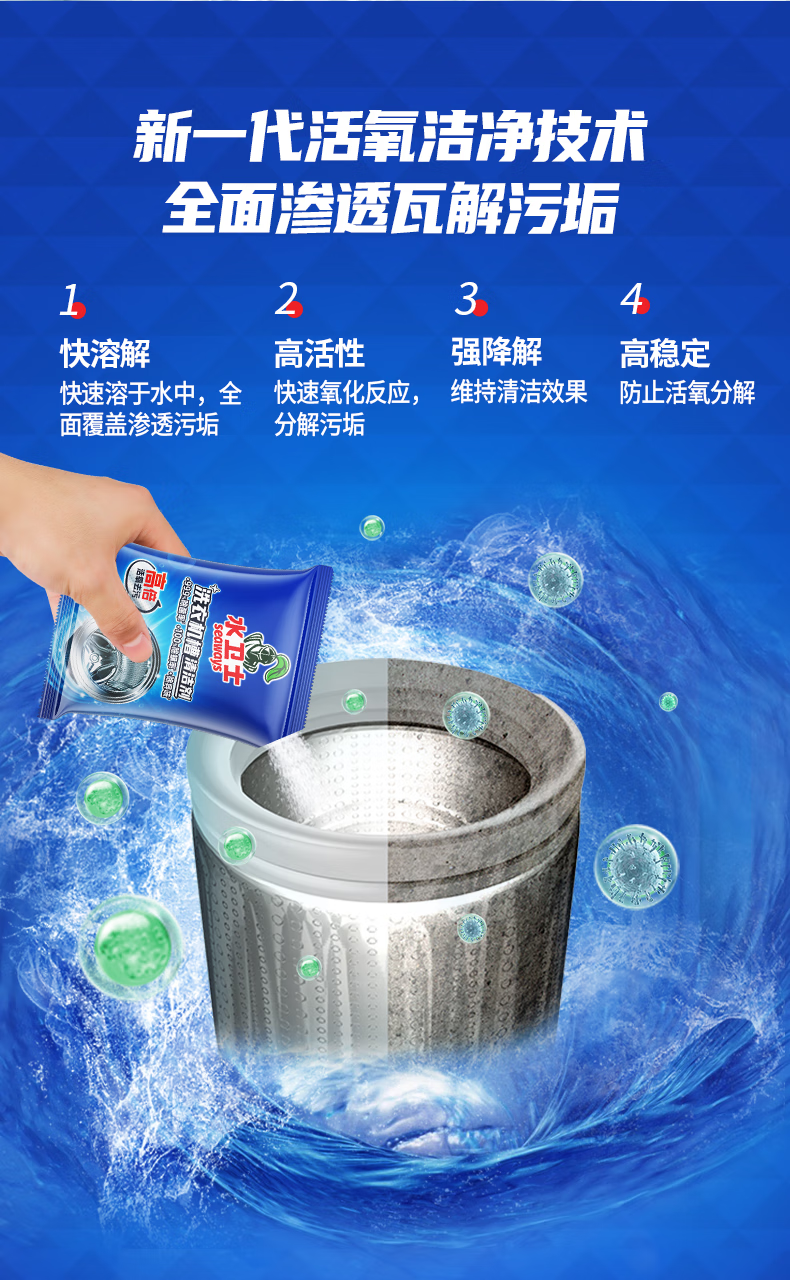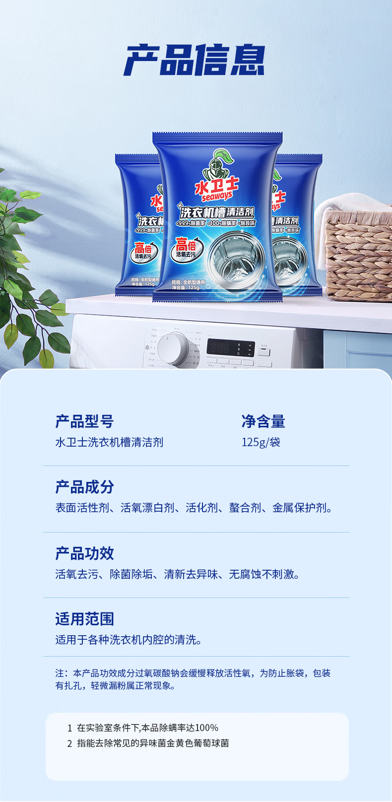 商品名称:(世星阳光) 水卫士 洗衣机槽清洁剂125g*6袋 高倍活氧 强效去垢