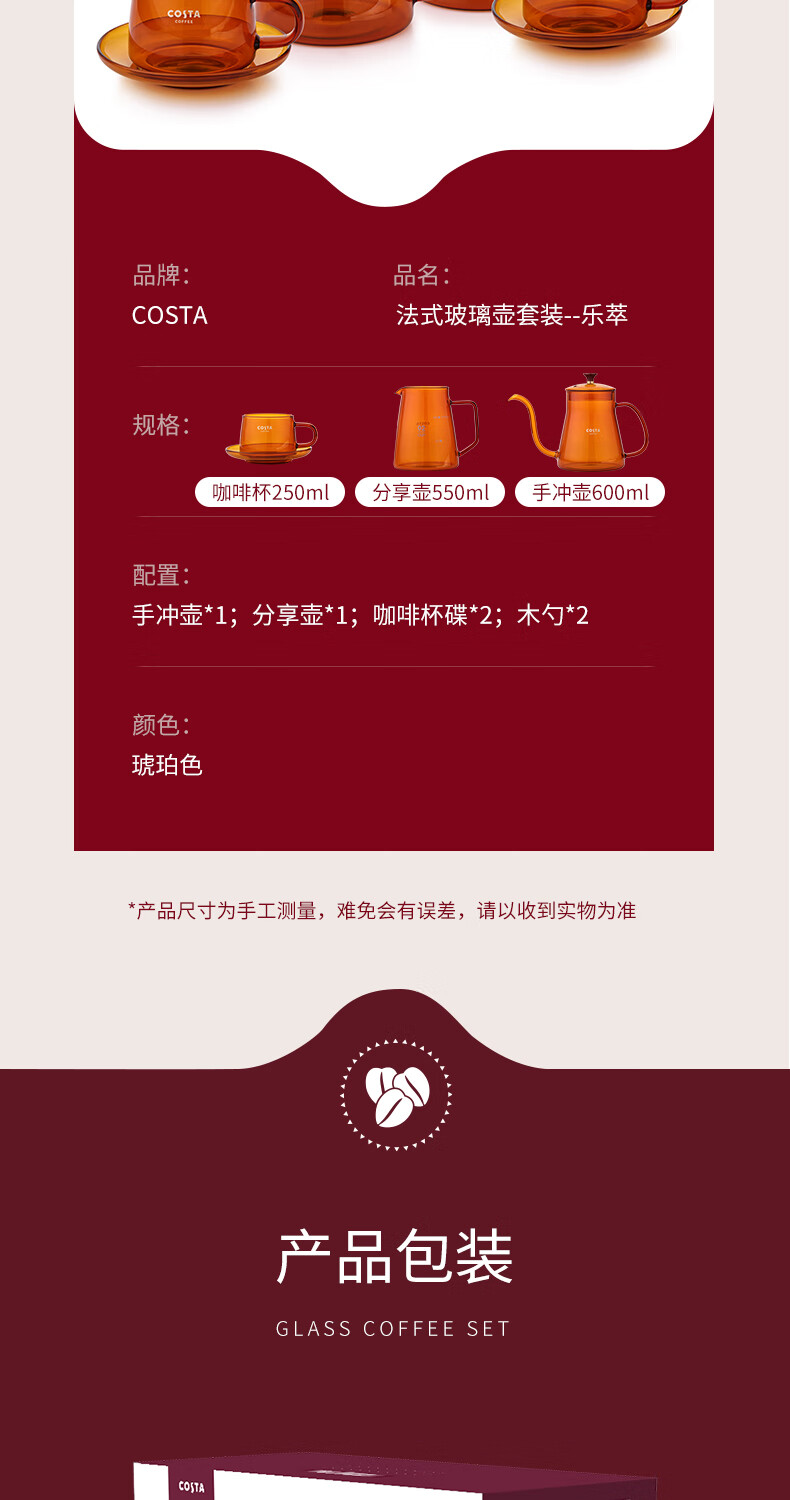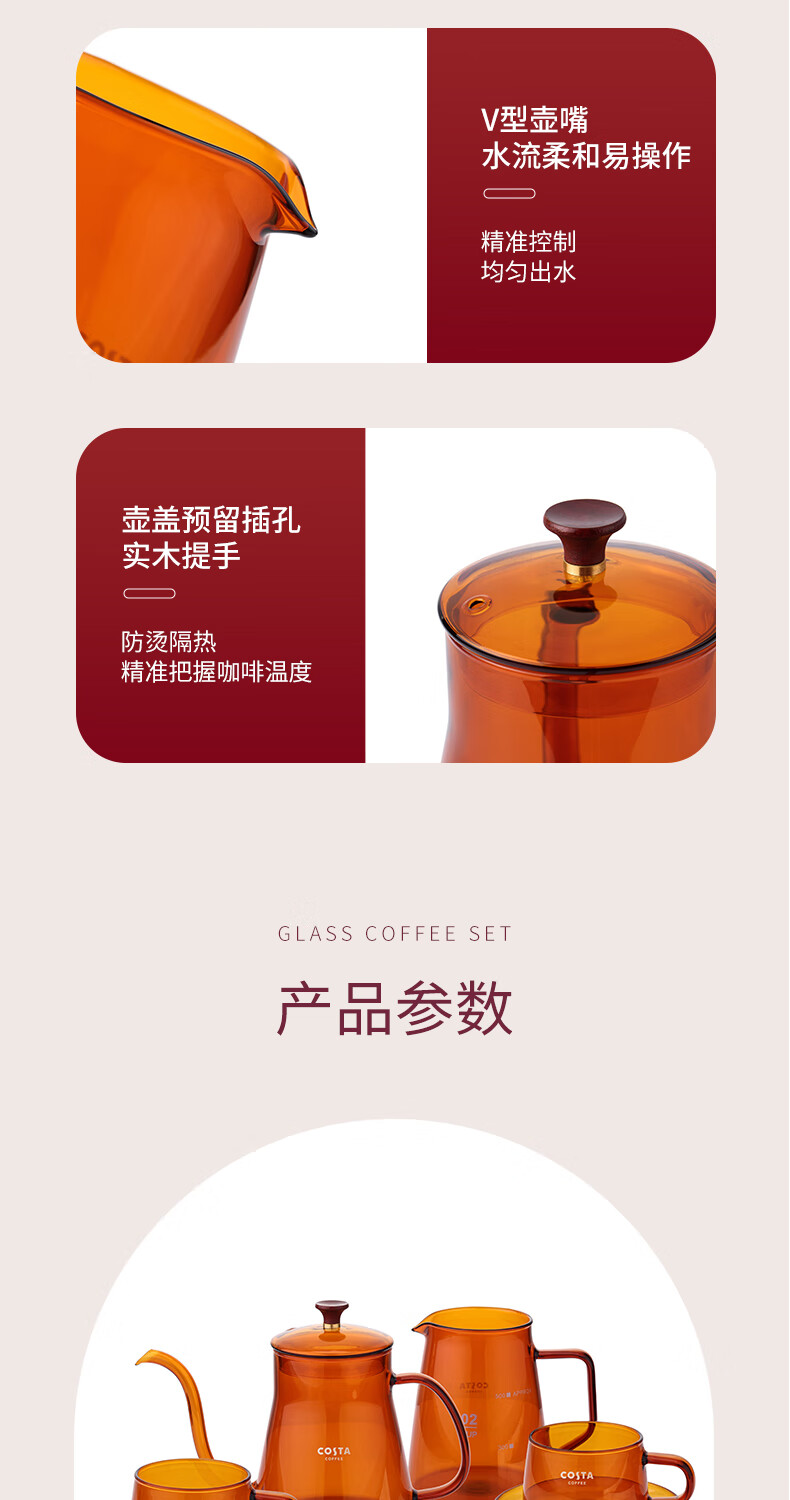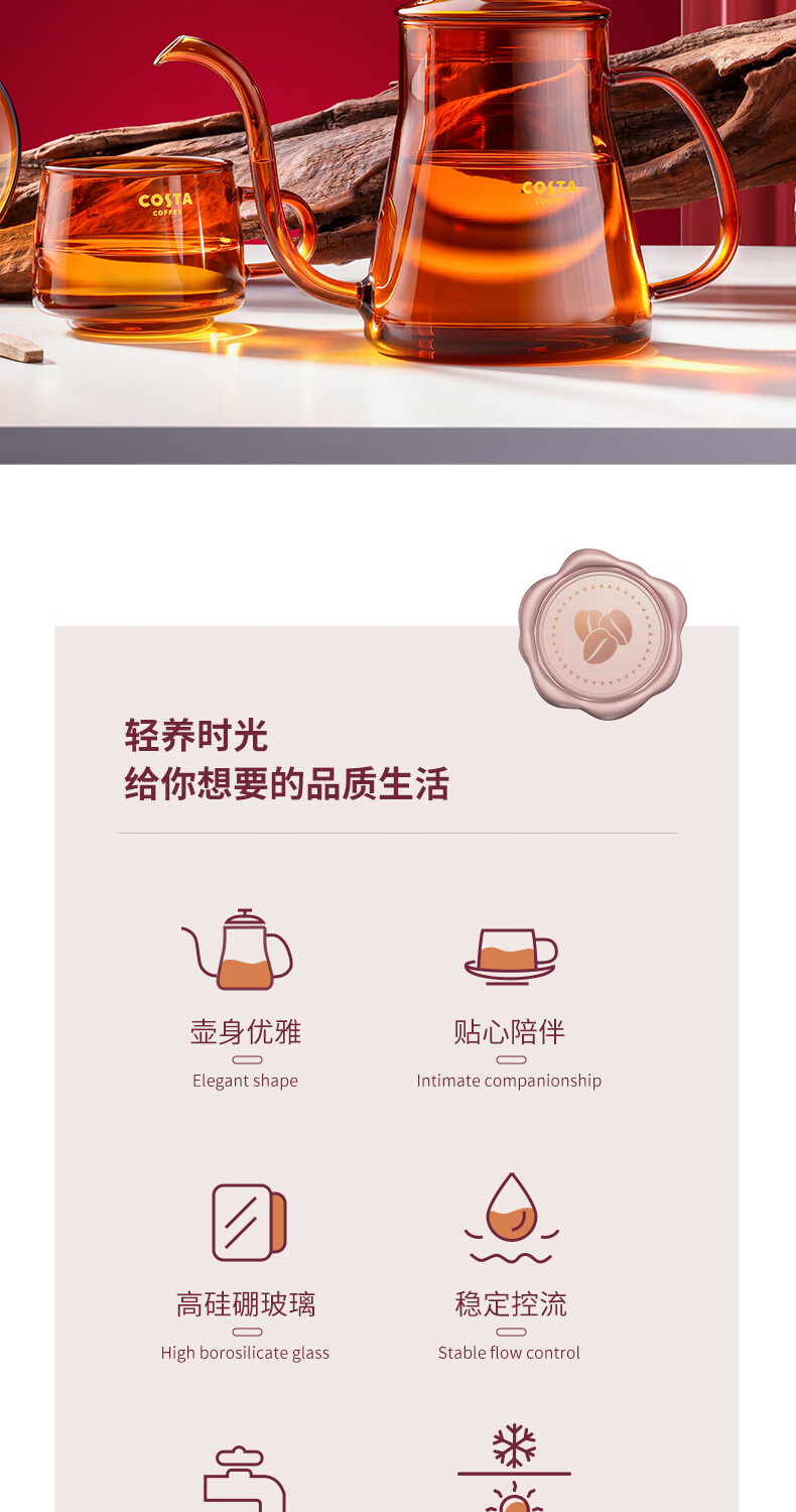 商品名称:(巨邦佑)BJ+COSTA 法式玻璃壶套装-乐萃 CO-H001KF 高硼硅玻璃V型壶嘴