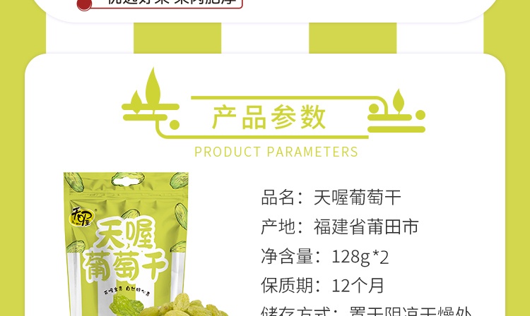 商品名称:(世星阳光)天喔 葡萄干128g*2袋 甘润清甜 甜而不腻 阳光孕育自然风干