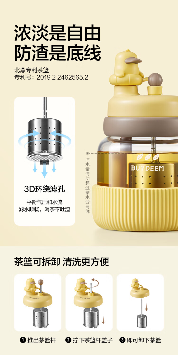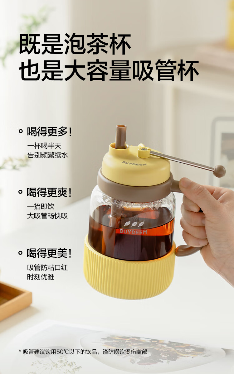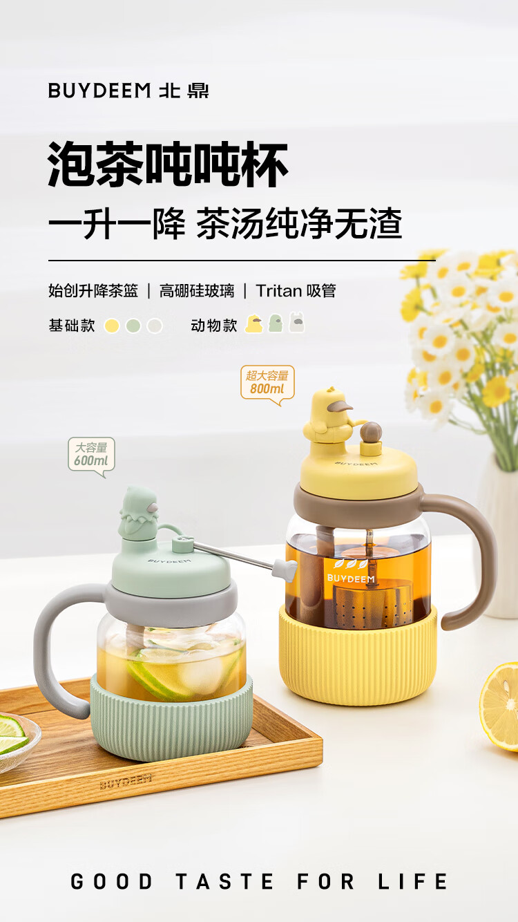 商品名称:(巨邦佑)R+北鼎泡茶吨吨杯600ml 富贵牛 茶水分离水杯 耐高温玻璃杯 便携吸管茶杯礼物