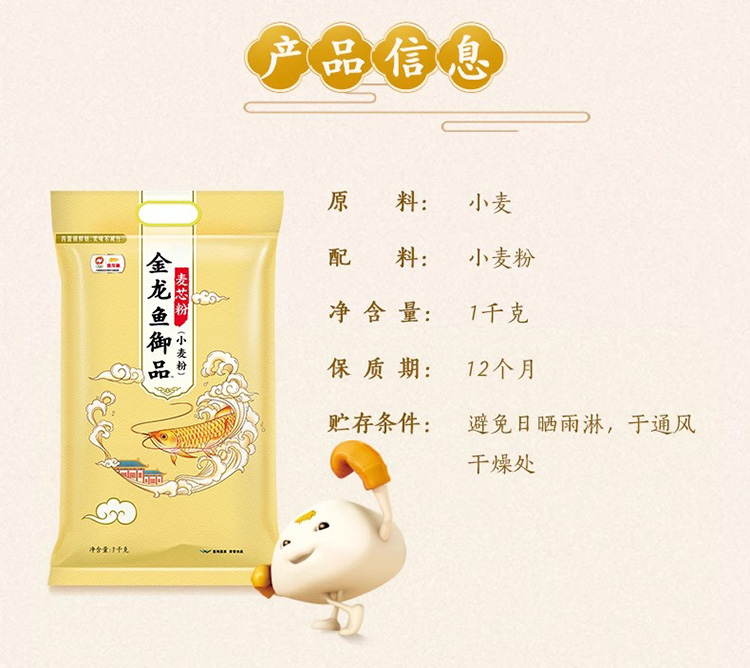 商品名称:(巨邦佑)T+ (yp)金龙鱼御品麦芯粉 1kg 家用小袋水饺馒头包子通用面粉