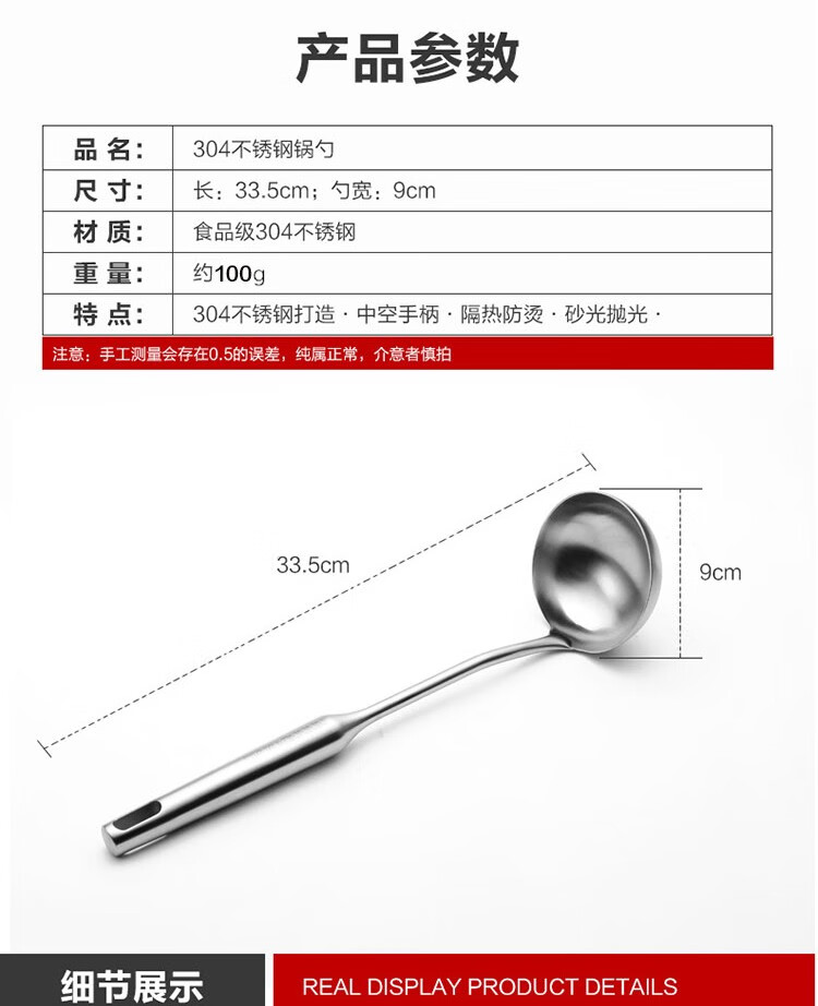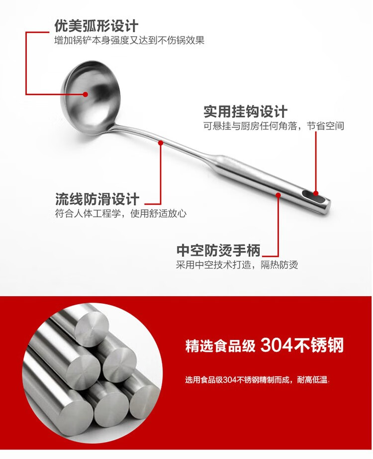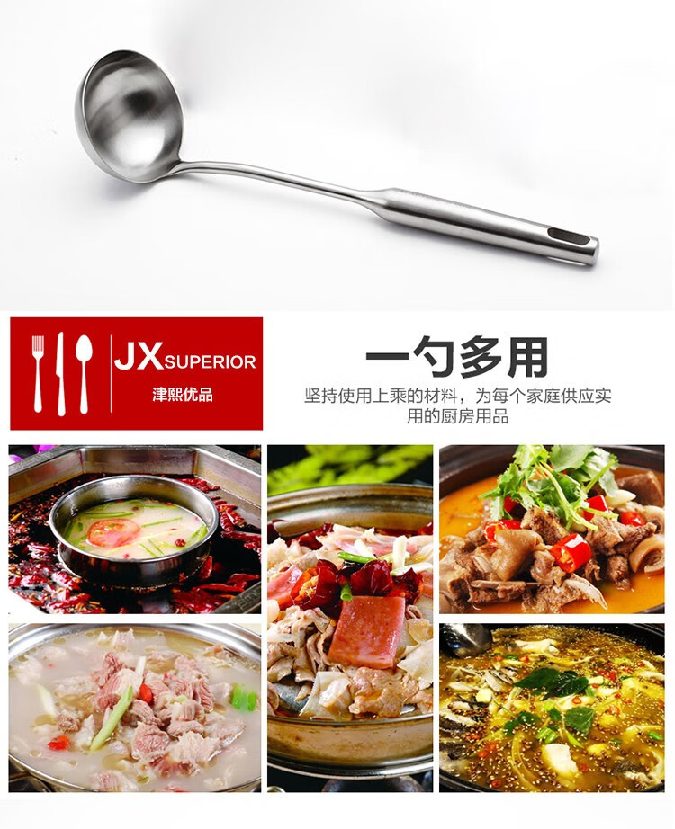 商品名称:(巨邦佑)BJ+津熙优品(Jxsuperior)304不锈钢大汤勺 锅勺汤匙汤瓢汤壳隔热不烫手铲勺厨房炊具