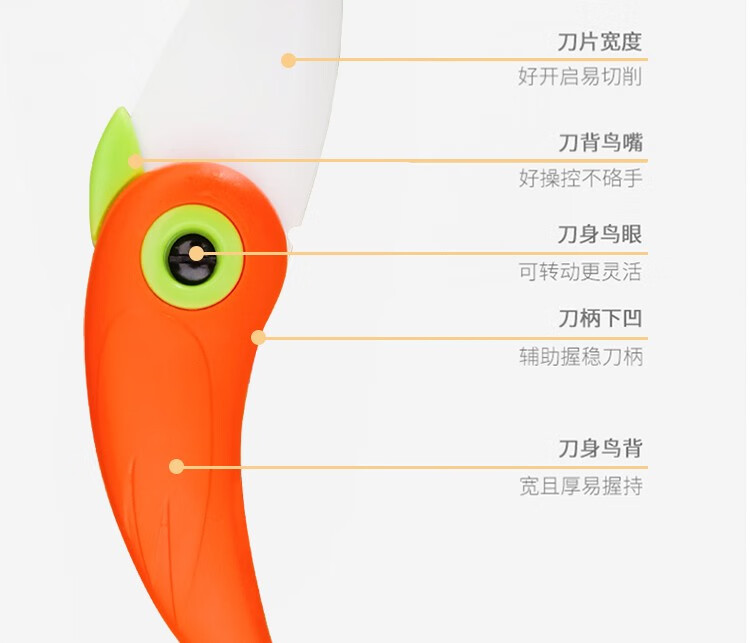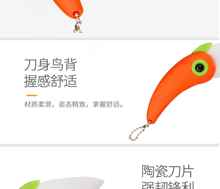 商品名称:(巨邦佑)BJ+津熙优品(Jxsuperior)卡通折叠刀 颜色随机 便携陶瓷刀水果刀小巧可爱小鸟不生锈