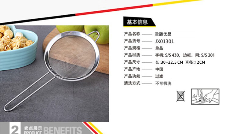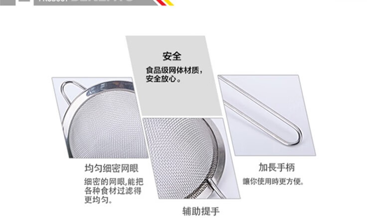商品名称:(巨邦佑)BJ+津熙优品(Jxsuperior)不锈钢过滤网 13cm 筛过滤网框锌合金厨房烹饪用
