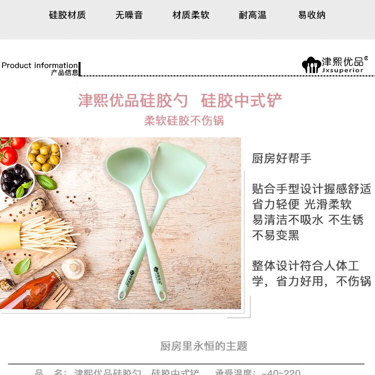 商品名称:(巨邦佑)BJ+津熙优品(Jxsuperior)硅胶不粘锅锅铲汤勺 耐高温铲勺中式