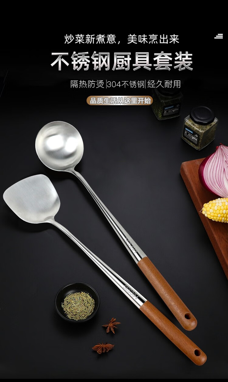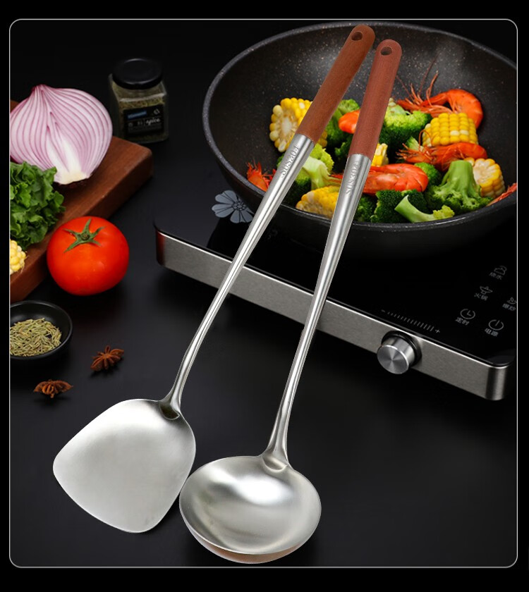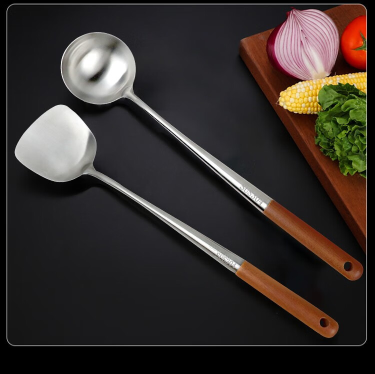 (巨邦佑)BJ+津熙优品(Jxsuperior)304不锈钢实木柄加长铲勺 厨师加厚无磁木柄长柄勺铲子