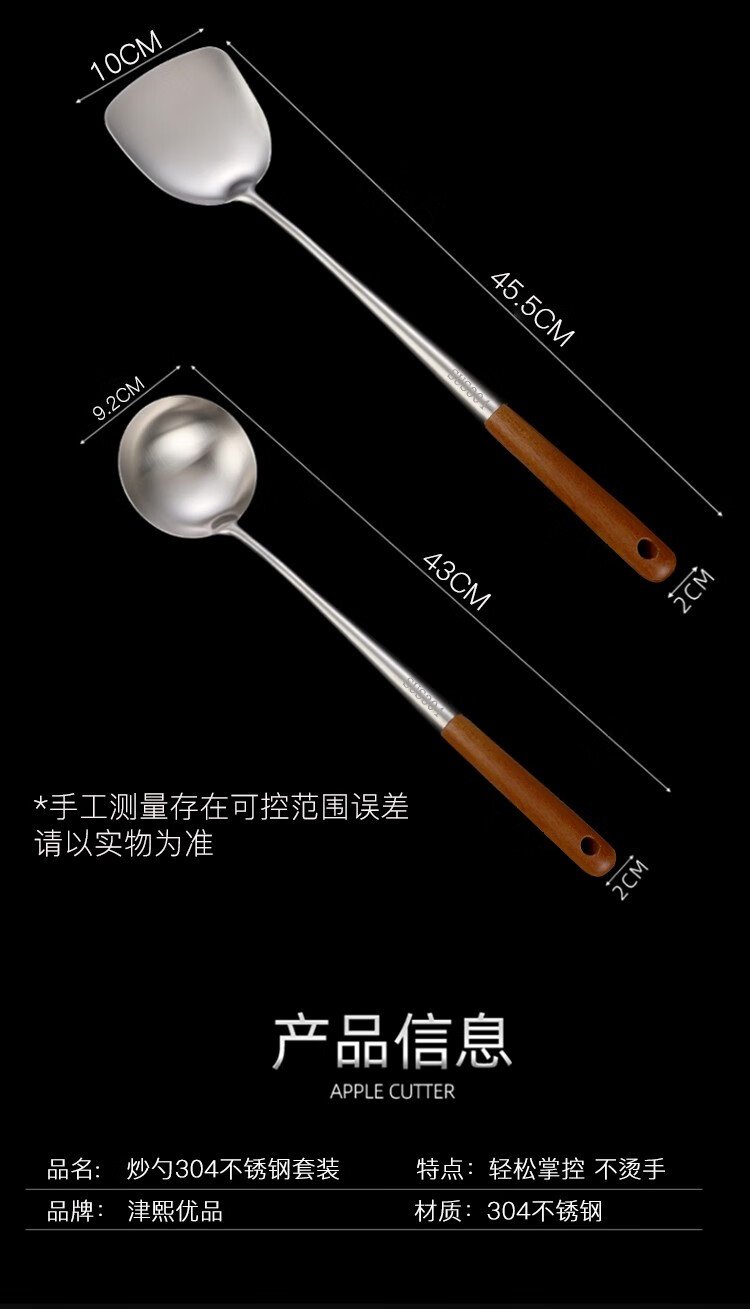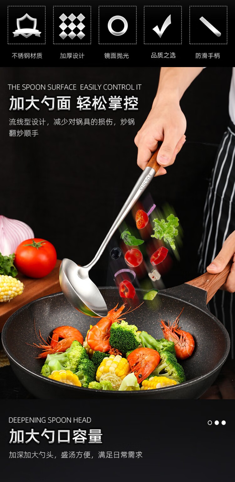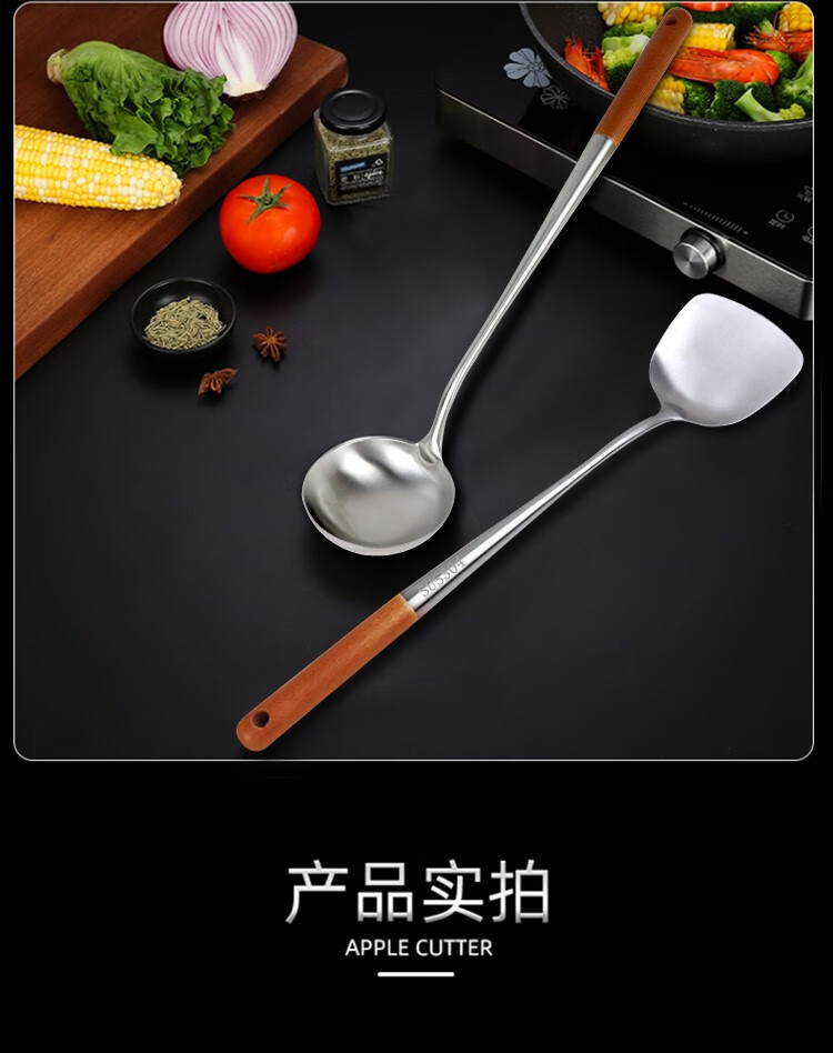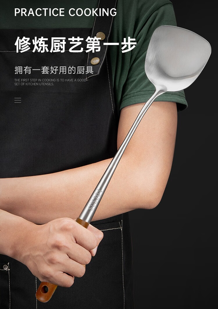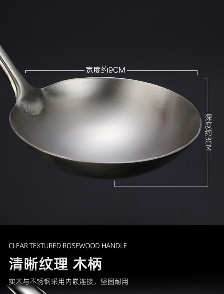 商品名称:(巨邦佑)BJ+津熙优品(Jxsuperior)304不锈钢实木柄加长铲勺 厨师加厚无磁木柄长柄勺铲子