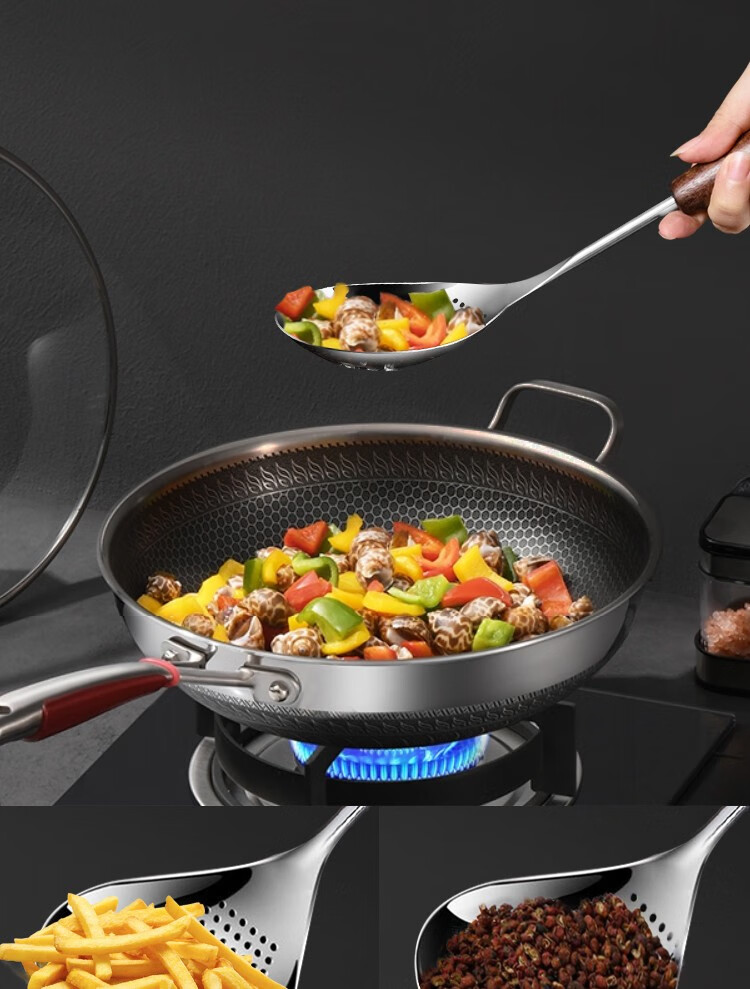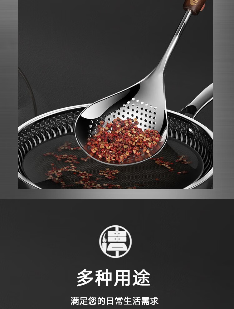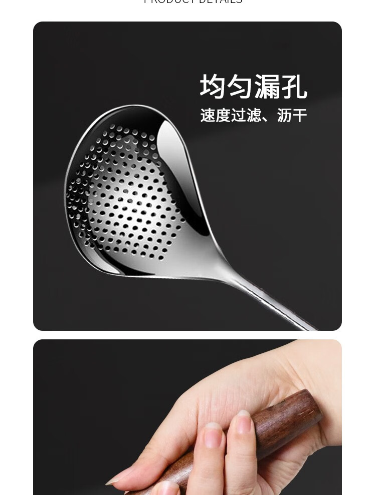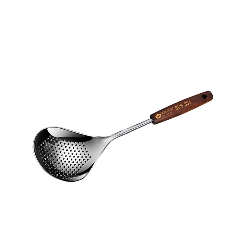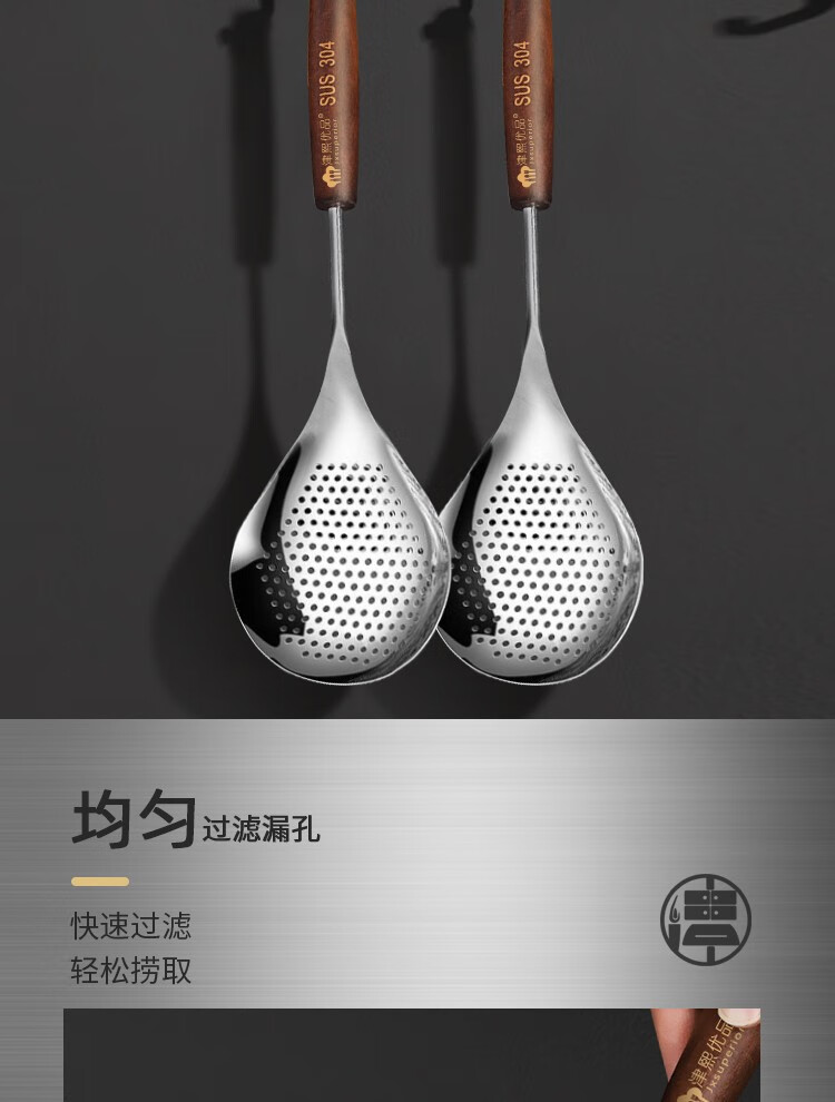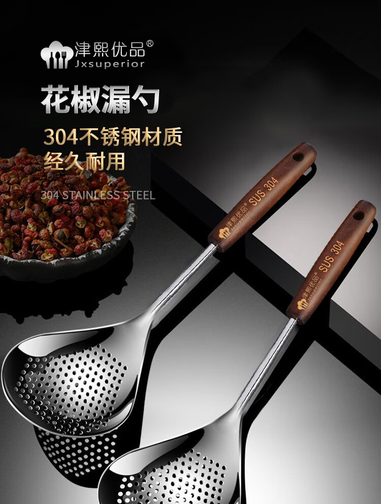 (巨邦佑)BJ+津熙优品(Jxsuperior)304不锈钢木柄花椒勺漏 铲子捞面条神器饺子过滤网捞勺沥水