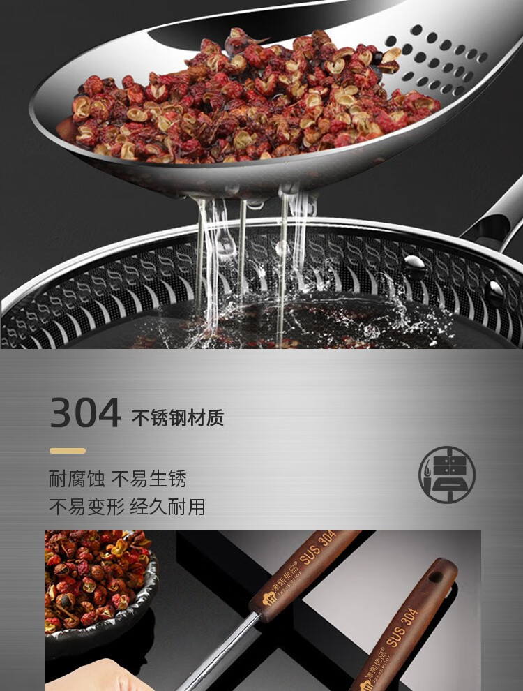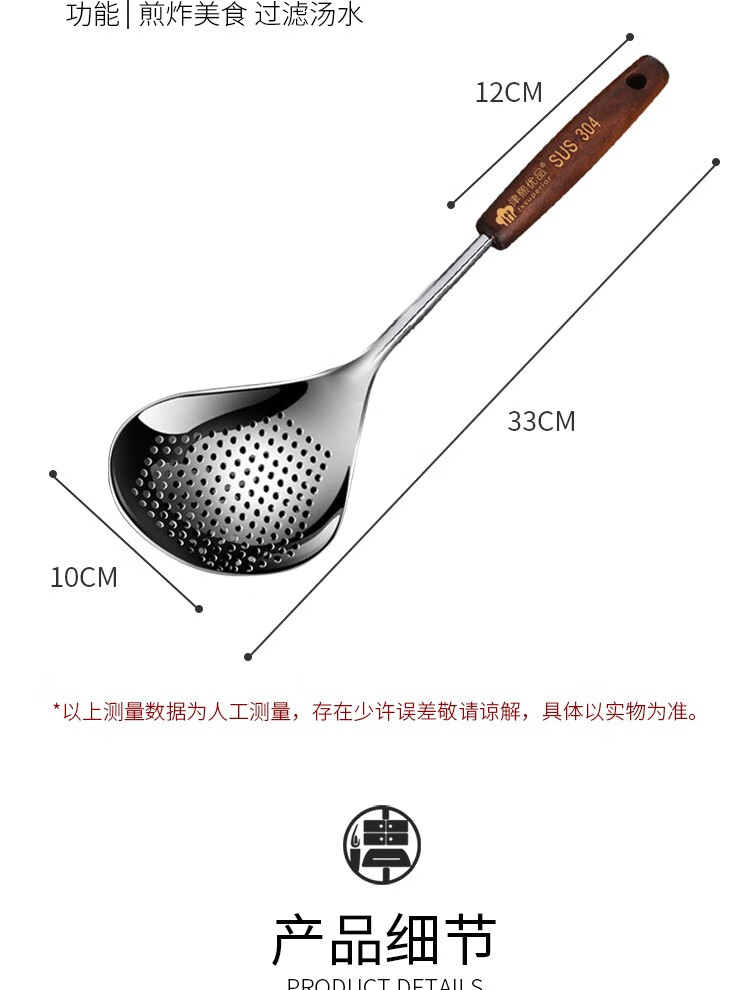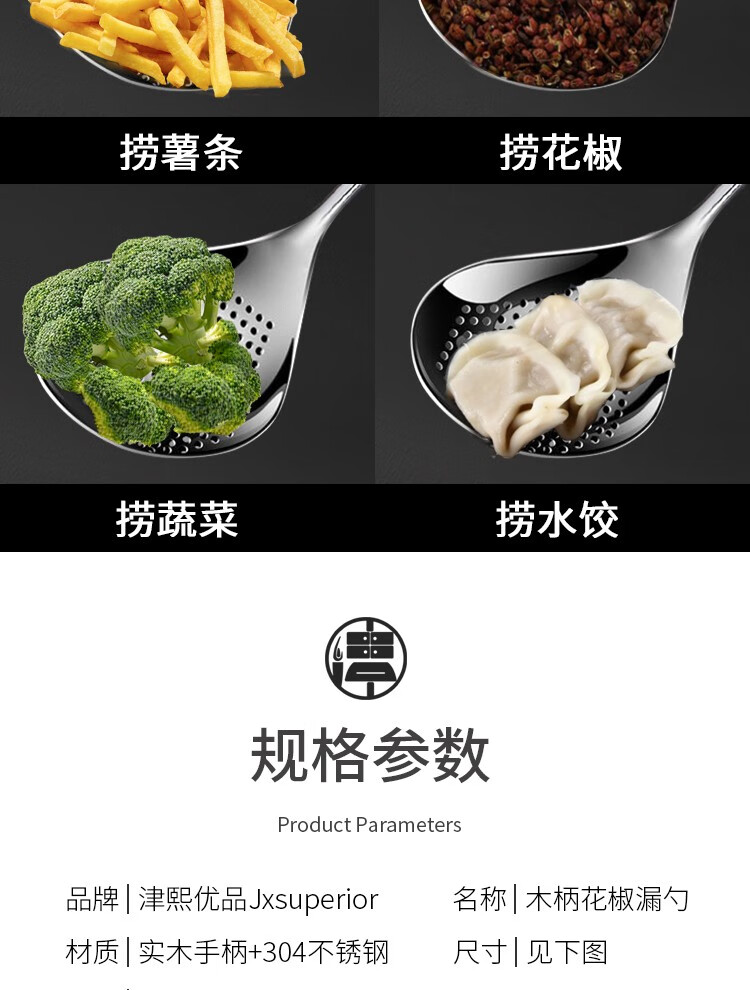 商品名称:(巨邦佑)BJ+津熙优品(Jxsuperior)304不锈钢木柄花椒勺漏 铲子捞面条神器饺子过滤网捞勺沥水