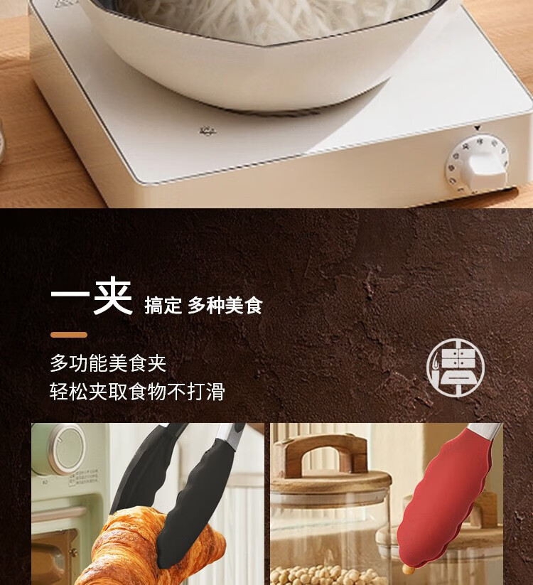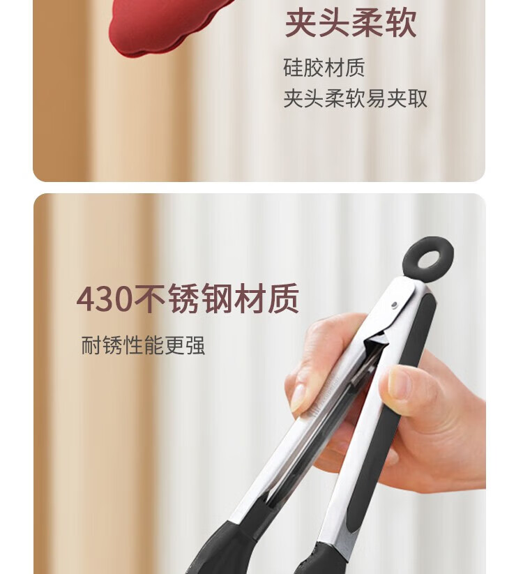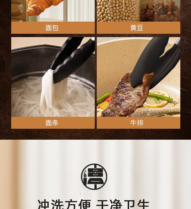 (巨邦佑)BJ+津熙优品(Jxsuperior)硅胶多用食品夹 防烫硅胶烧烤夹面包夹牛排夹多用食物夹