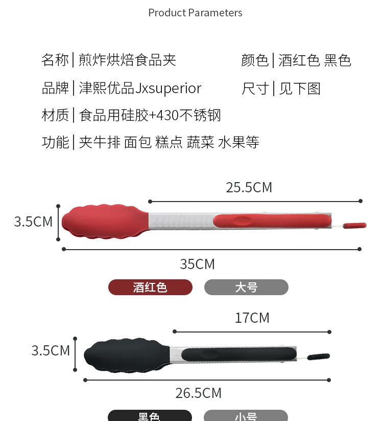 商品名称:(巨邦佑)BJ+津熙优品(Jxsuperior)硅胶多用食品夹 防烫硅胶烧烤夹面包夹牛排夹多用食物夹