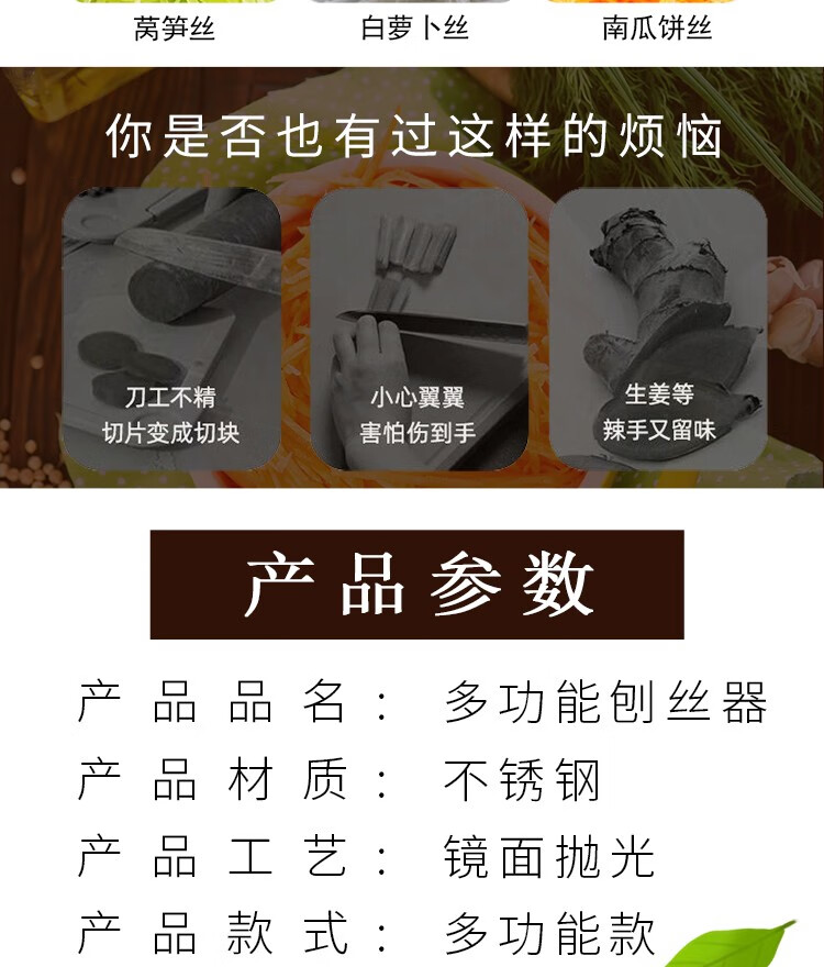 商品名称:(巨邦佑)BJ+津熙优品(Jxsuperior)不锈钢蔬菜刨 多功能刨丝器瓜果切丝切片刨粗丝细丝