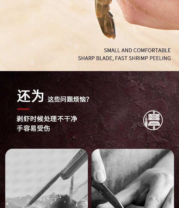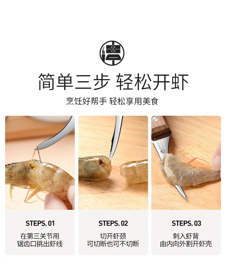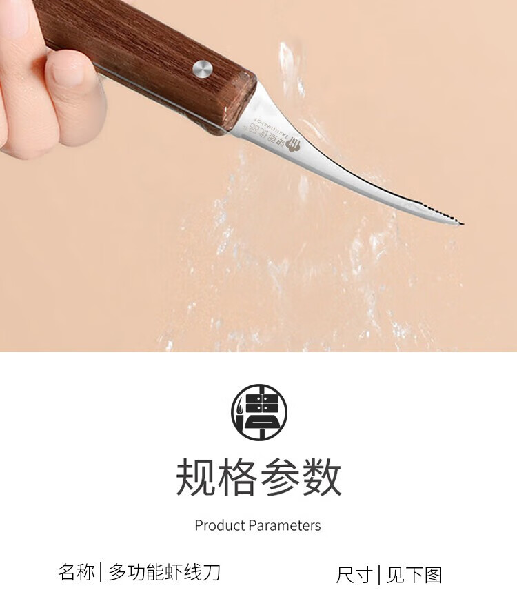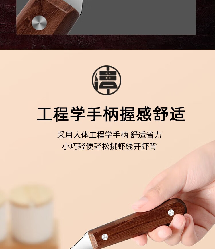 (巨邦佑)BJ+津熙优品(Jxsuperior)木柄虾线刀 开虾背刀家用剥小龙虾工具 剖鱼肚刀