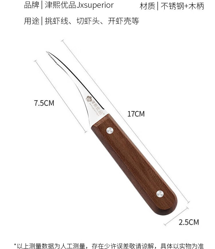 商品名称:(巨邦佑)BJ+津熙优品(Jxsuperior)木柄虾线刀 开虾背刀家用剥小龙虾工具 剖鱼肚刀