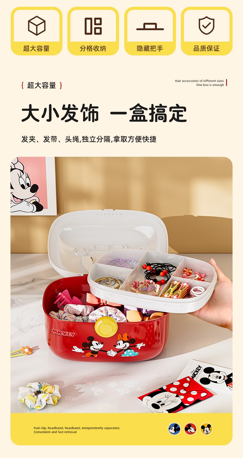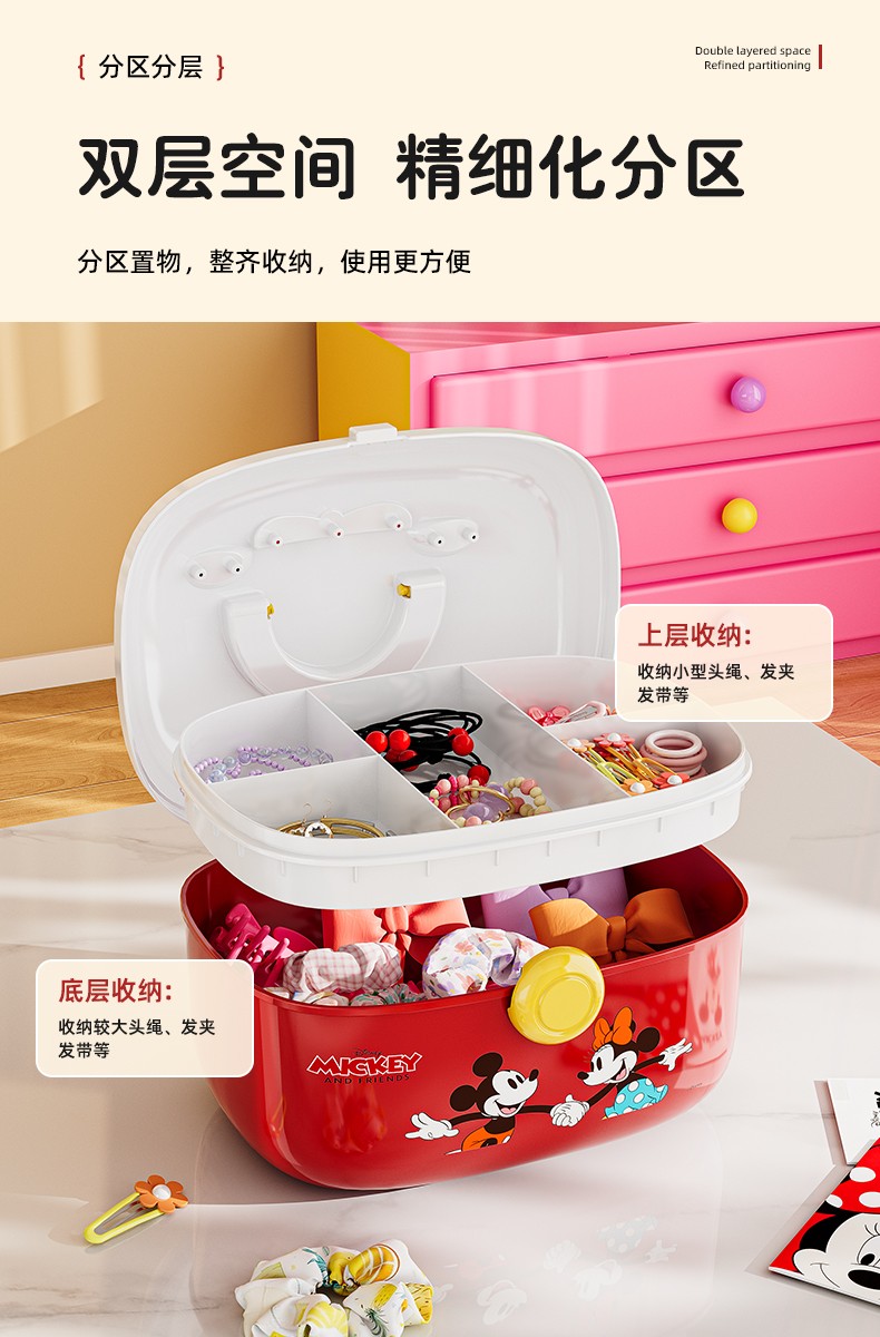 (巨邦佑)BJ+迪士尼收纳箱 萌趣发饰盒超大容量分隔收纳隐藏把手