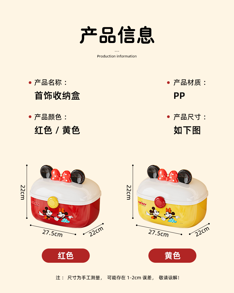 商品名称:(巨邦佑)BJ+迪士尼收纳箱 萌趣发饰盒超大容量分隔收纳隐藏把手