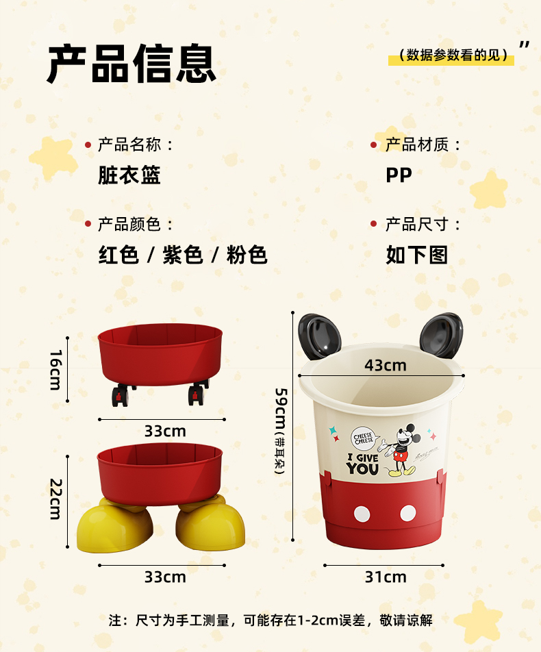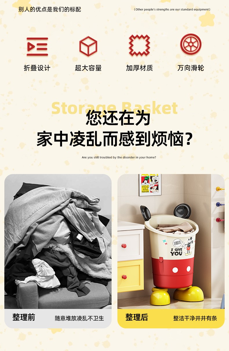 商品名称:(巨邦佑)BJ+迪士尼收纳篮 脏衣收纳折叠设计超大容量加厚材质万向滑轮