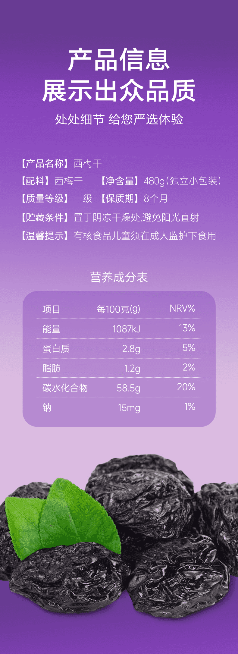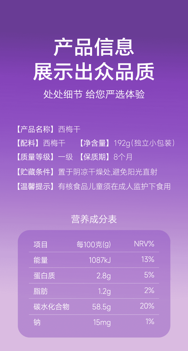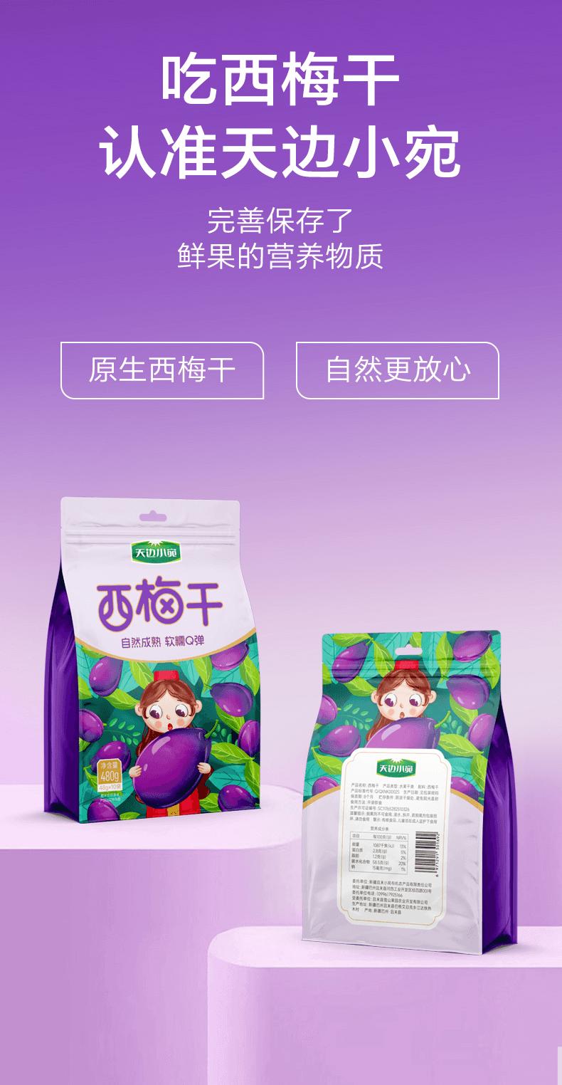 商品名称:(巨邦佑)BJ+天边小宛 西梅干192g*2 新疆特产大西梅干果干果铺蜜饯办公室零食休闲食品追剧